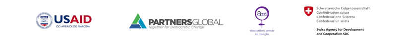 Izrada ovog projekta omogućena je uz podršku američkog naroda putem Američke agencije za međunarodni razvoj (USAID) i podršku Vlade Švajcarske putem Švajcarske agencije za razvoj i saradnju (SDC). Sadržaj dokumenta/publikacije/izveštaja je isključivo odgovornost Alternativnog centra za devojke i ne predstavlja nužno stavove USAID-a, Vlade SAD, SDC-a, ili Vlade Švajcarske.